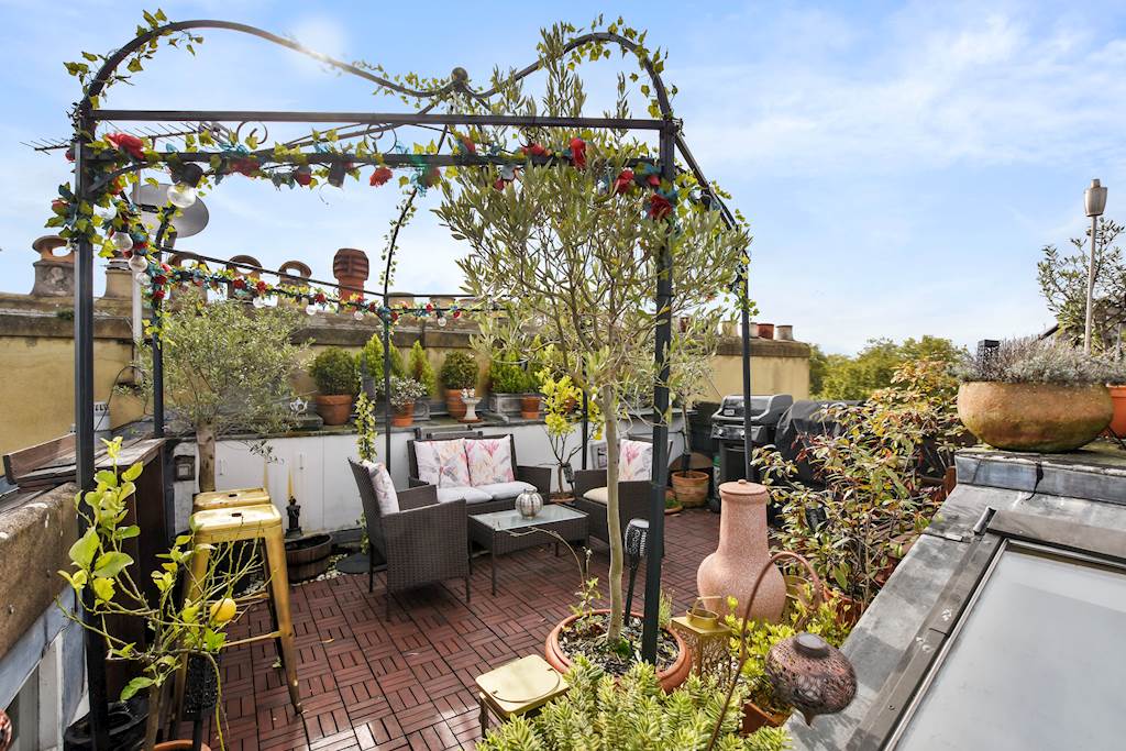 Extremely light 2 bedroom top floor flat Expansive open-plan reception room Lovely master bedroom with en suite bathroom Modern well equipped kitchen 2nd bedroom with French doors opening onto the Balcony Good sized Roof Terrace with views over London Excellent location, close to amenities and transport links Generous storage space